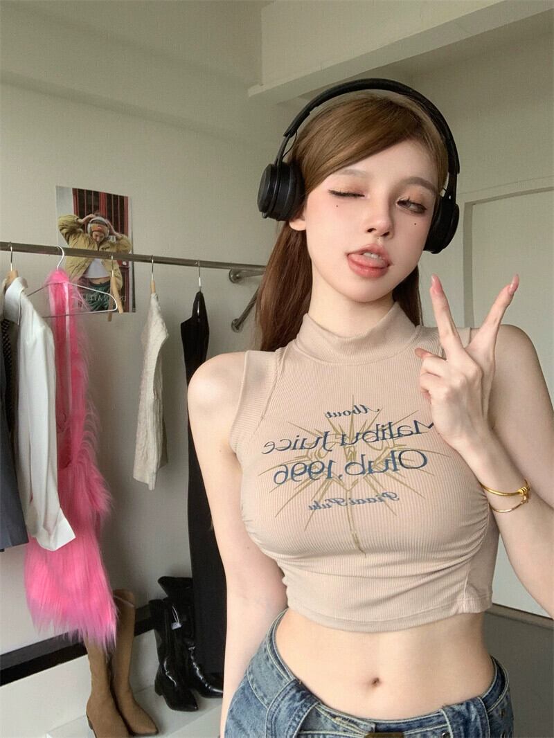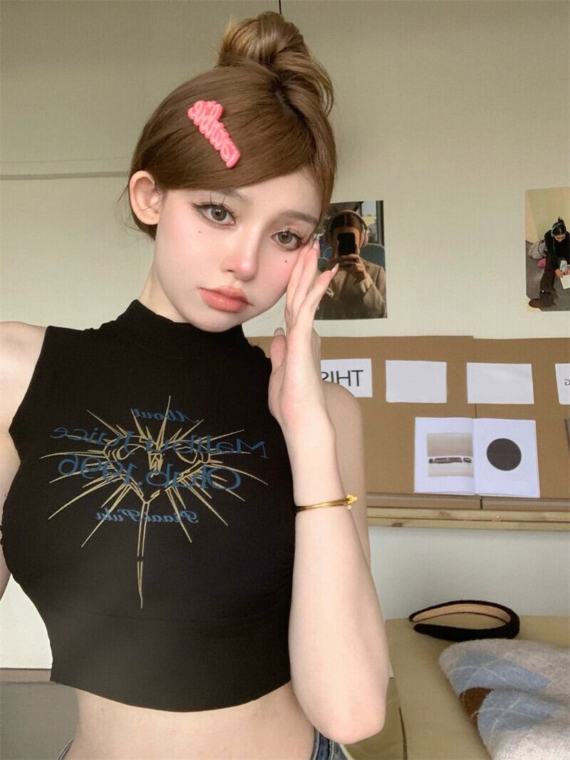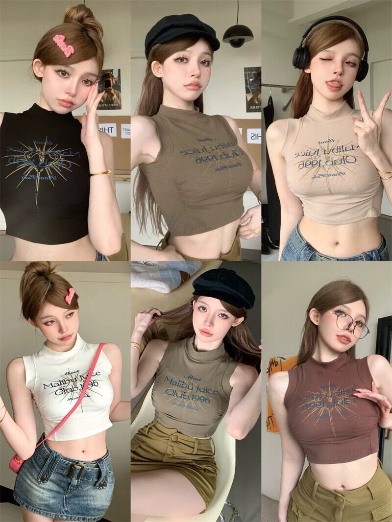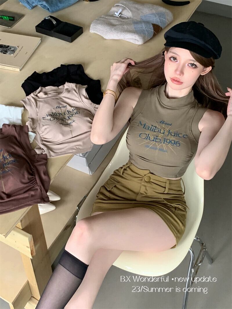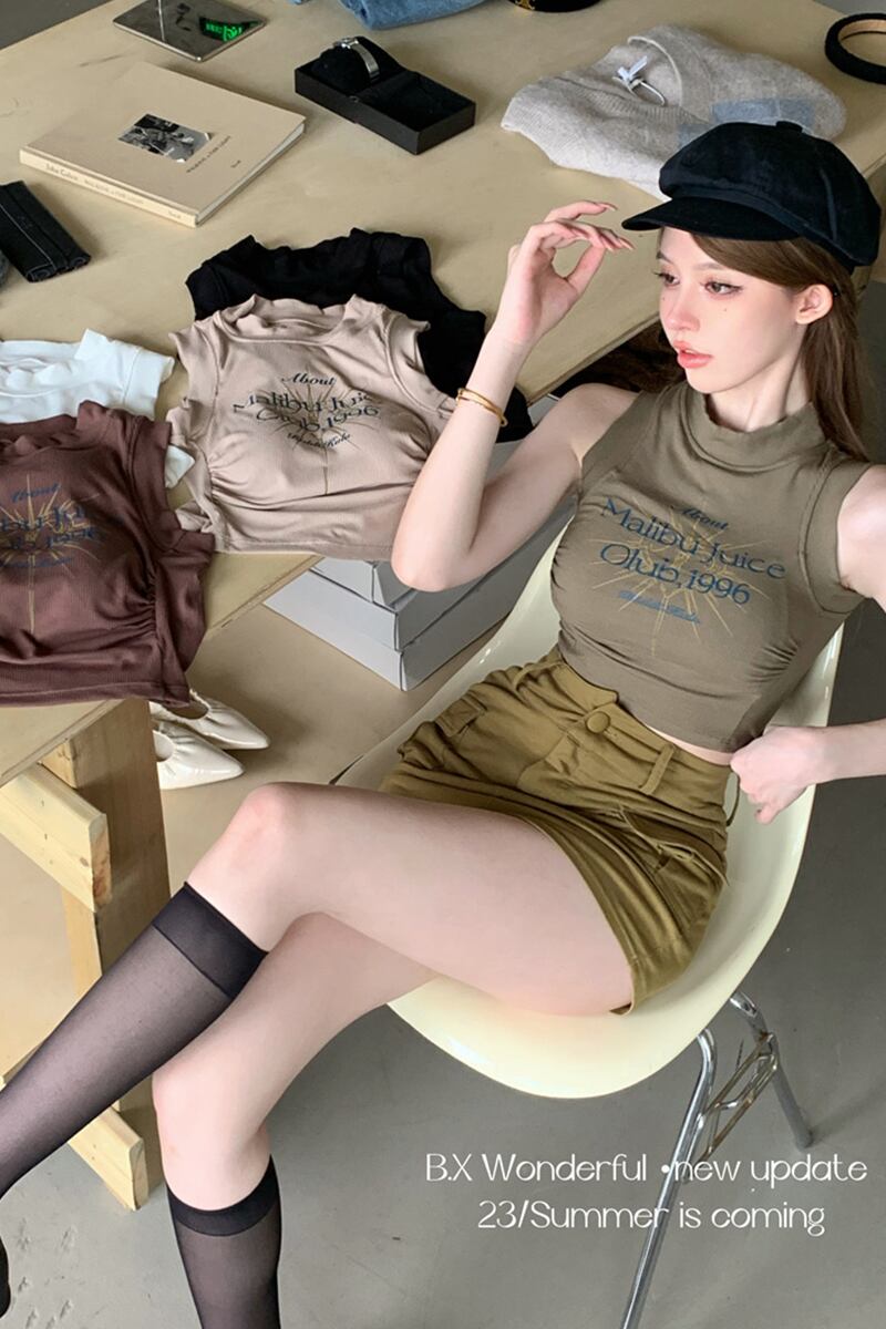 純粋な欲望アメリカのセクシーなキャミソール女性の夏のプリントハイウエストインナーボトリングシャツショートトップアウター ハイウェスト サマー 夏物 bstraw3520118024 | beaute25