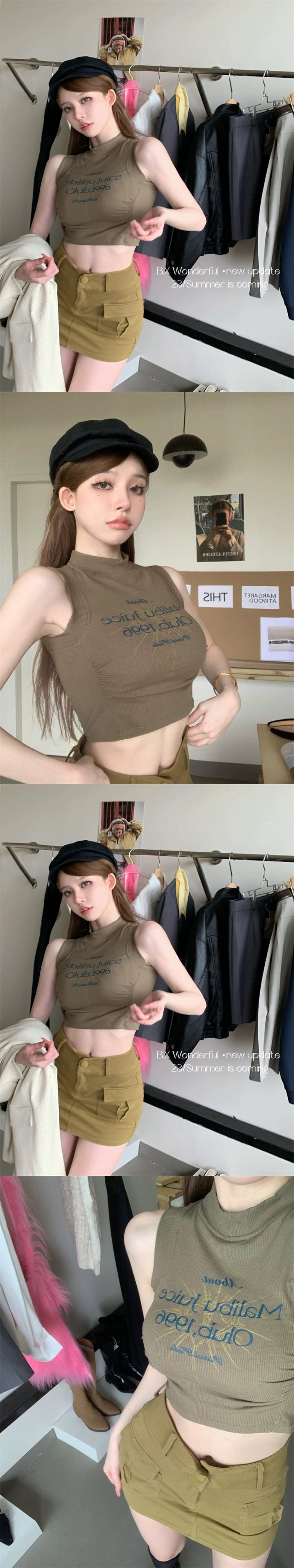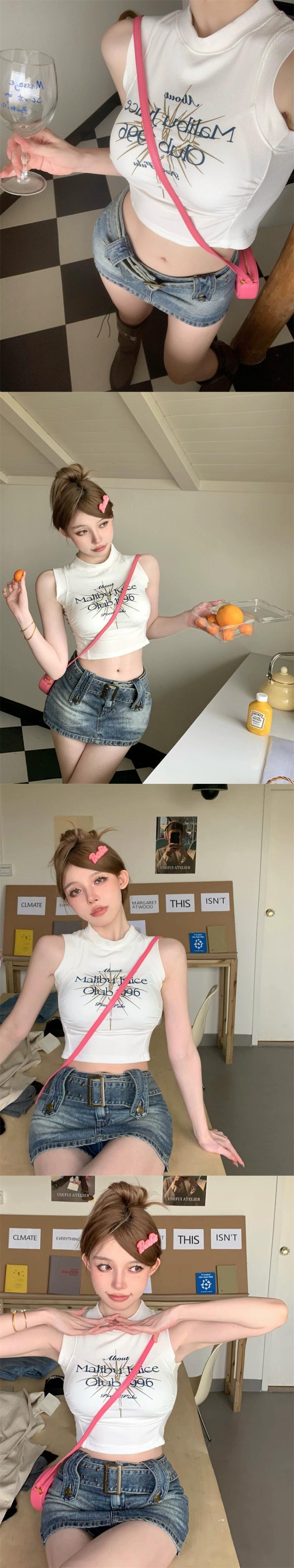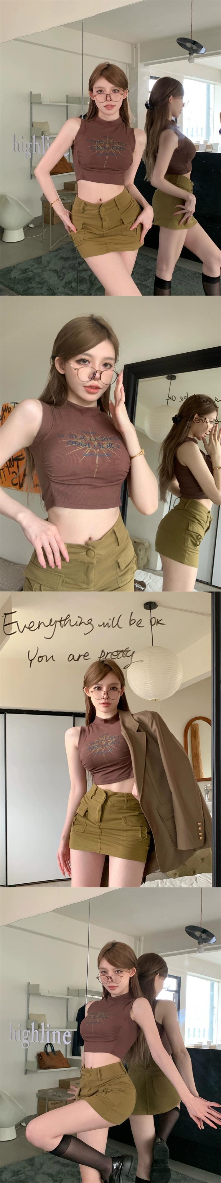 純粋な欲望アメリカのセクシーなキャミソール女性の夏のプリントハイウエストインナーボトリングシャツショートトップアウター ハイウェスト サマー 夏物 bstraw3520118024 | beaute25