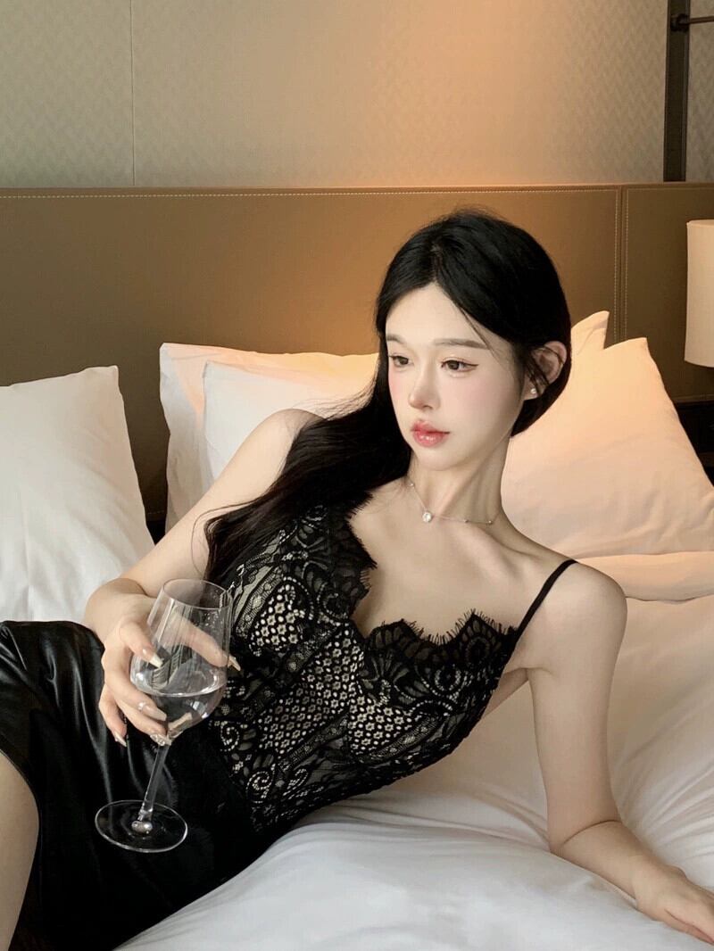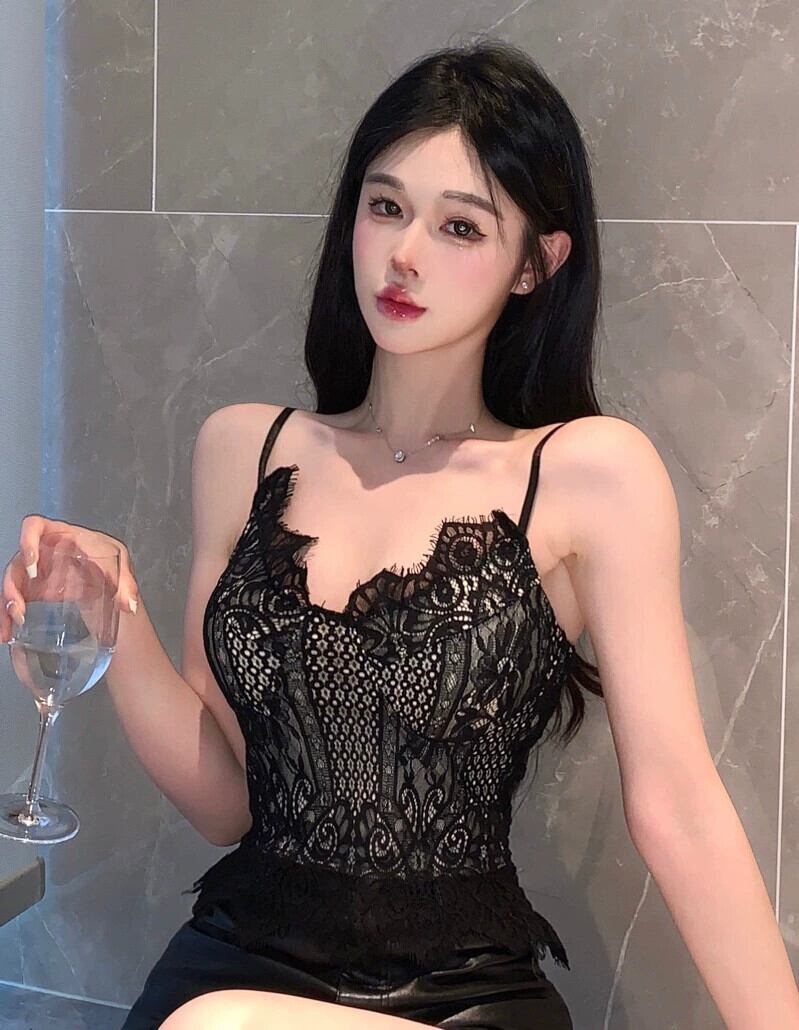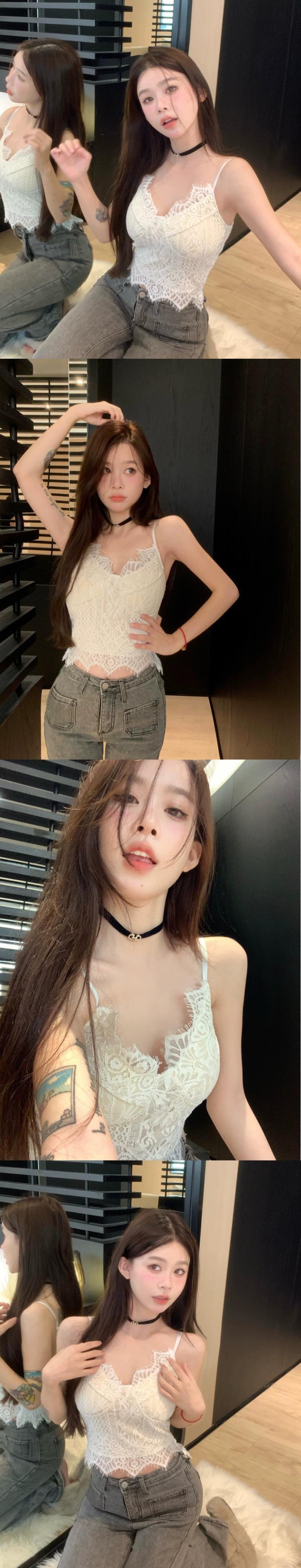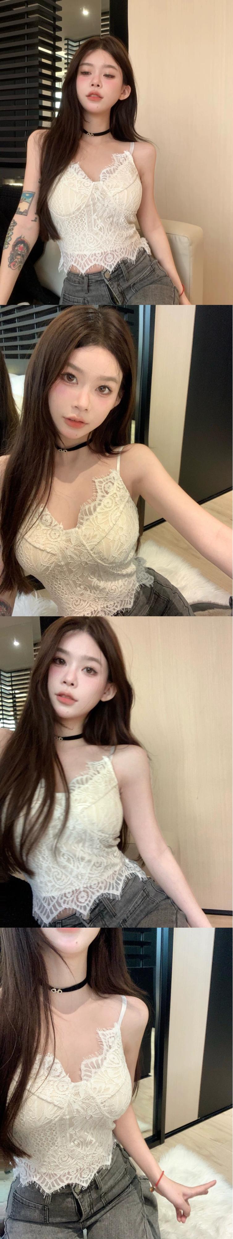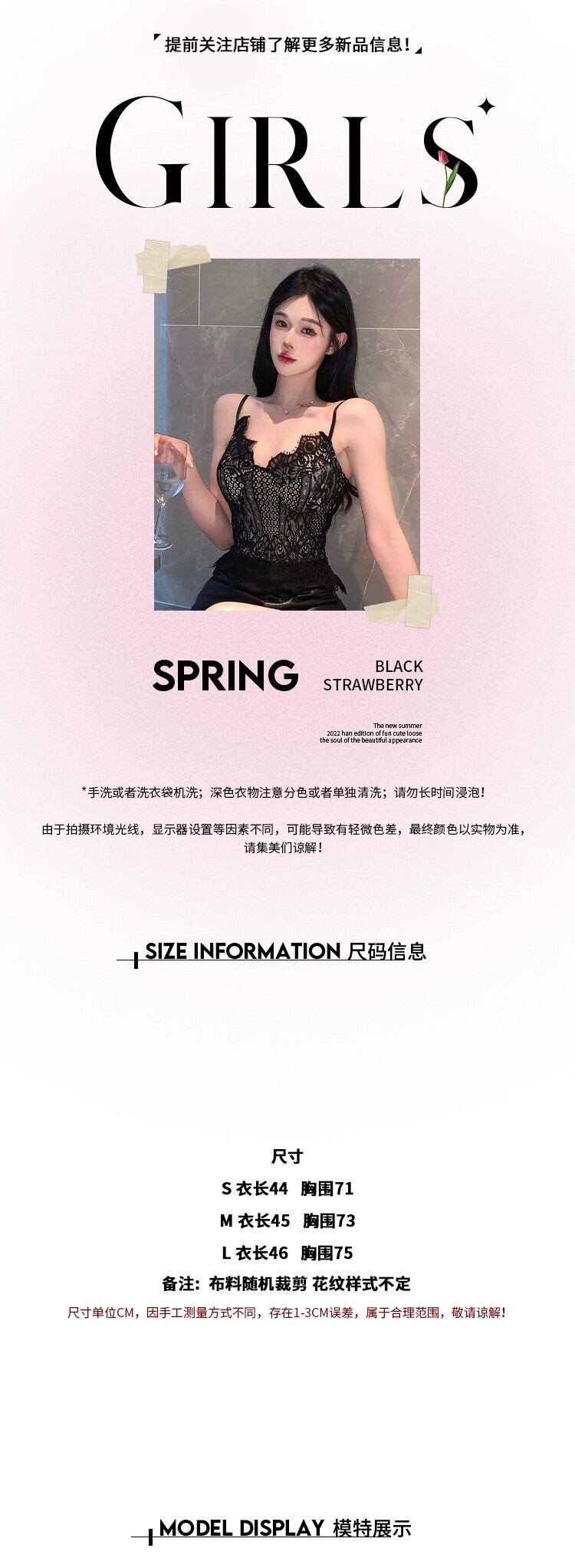 黒レースキャミソール女性の春純粋な欲望セクシーな V ネック美しいバックインナーボトムシャツショートトップ ブラック スプリング 春物 Vネック ピュア berry39112916174 | beaute25