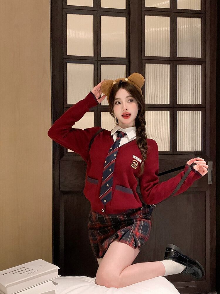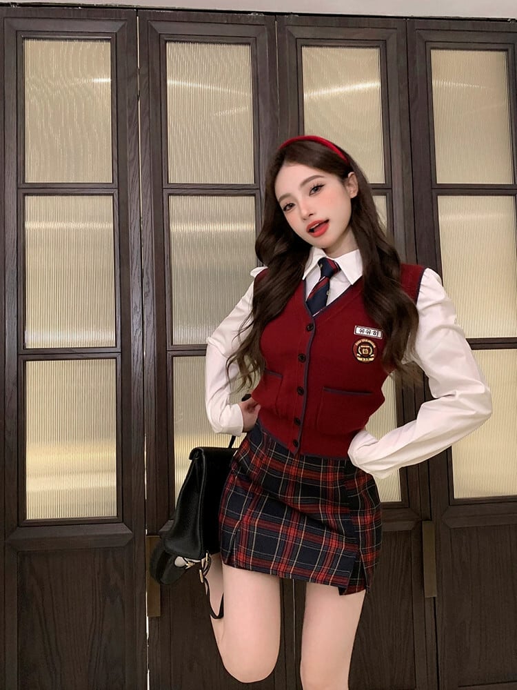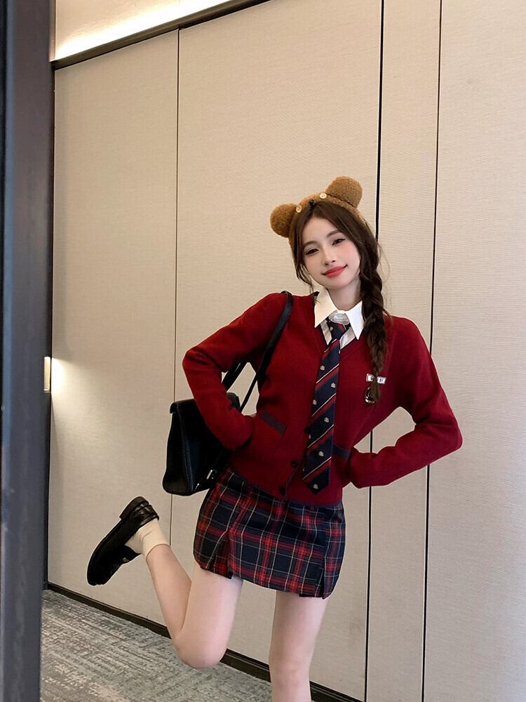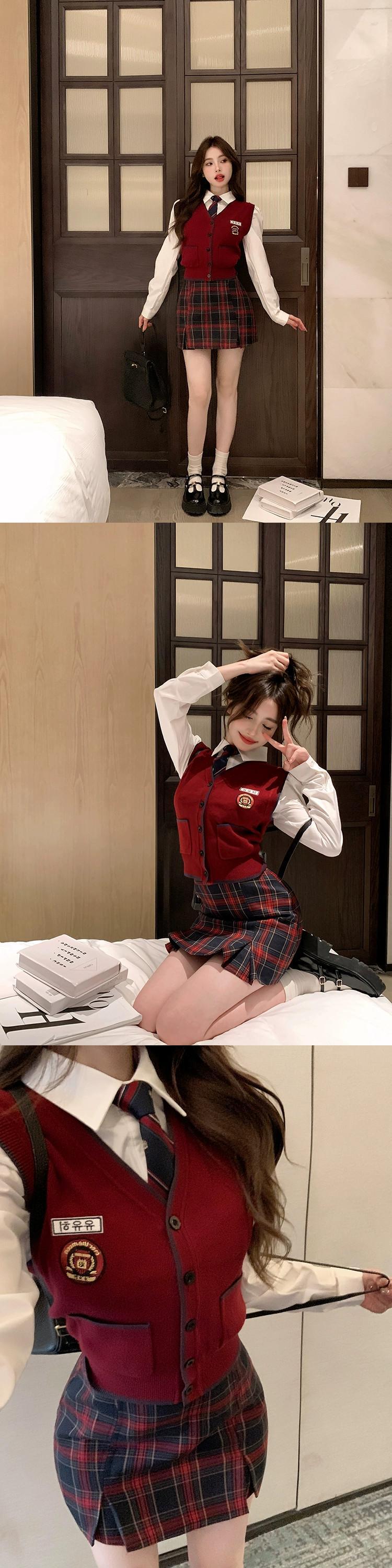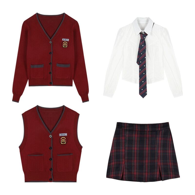 色:ベスト,カーディガン,スカート,ネクタイと白いシャツ
